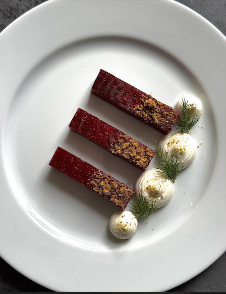 - Ash & Earth | Smoked Beet · Whipped Goat Cheese · Pistachio